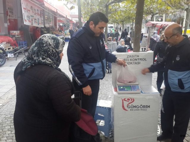Vatandaşların sağlıklı alış veriş yapması için bir dizi çalışmalara imza atan Güngören belediyesi Zabıta müdürlüğü pazar esnafı ile müşterileri arasındaki adalet köprüsünü bizzat denetliyor. Pazar girişlerinde kurdukları terazili standlarla alış veriş yapan müşterilerin poşetlerini tekrar tekrar tartarak hem esnafa helal kazanç sağlamanın mutluluğunu yaşatırken pazar alış verişine çıkanlarada güven veriyor. Zabıta müdürü İhsan Albayrak yaptığı açıklamada "Bizler Güngören belediyesi olarak halkımızın pazarlardaki alış veriş rahatlığı ve mutluluğunu en üst seviyeye çıkartmak için çalışmalarımız aralıksız devam ediyor. Pazarlardaki denetimsiz ve korsan tezgahlara karşı mücadelemiz devam ederken alış veriş esnasında olumsuzluğu giderecek gramaj hatalarında karşı önlemlerimiz devam etmektedir."dedi. Güngören belediye zabıta ekipleri 24 saat hizmet esaslarına göre kurdukları özel timlerle ilçe genelindeki olumsuzluklara anında müdahale ederek çalışmalarına devam ediyor. Vatandaşların pazardaki gramaj uygulamaları ile de memnuniyetlerini dile getirdiler.