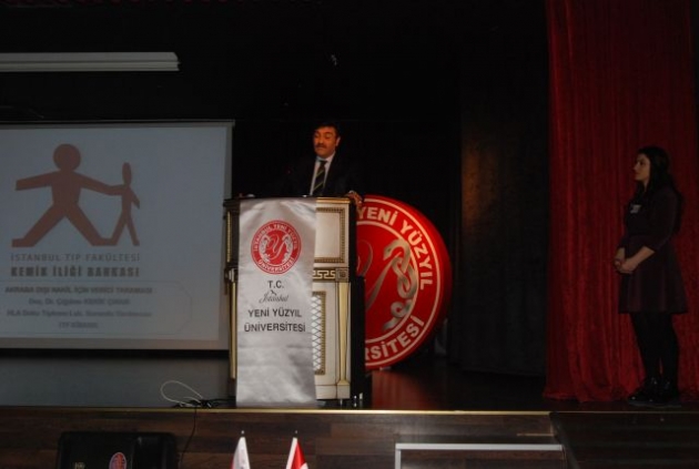 Yeni Yüzyıl Ünüversite ögrencilerin düzenledegi organ nakli ve kemik iligi kök nakli konferansına katılan İstanbul ünüversitesi kemik iligi bankası laboratuvarı sorumlusu Doç Dr Çiğdem Kekik Çınar İl Sağlık Müdürlüğü Organ ve Doku nakli İstanbul Korninosyon Merkez sorumlusu Dr Ali Demirel Mermara Ünüversitesi Kanope Bölge sorumlusu Doç Dr Ender Dulundu verdikleri birifingde öğrençileri aydınlatdılar Toplumsal olarak Organ ve kemik iliği naklinde daha yeterlilik durumda olmadıgımızı genc ögrenciler olarak bu görevi üstlenip iyi bilinçlenip toplumsal duyarlılıgımızın artırılmasında duyarlı olmalarını istediler kemik iliği naklini daha cok cocuklarda görüldügünü icimizin daha yandıgını 18 50 yaş arası herkesin kemik iligi naklinde daha verimli oldugunu bir donür bir hayat demekdir canlıdan canlıya organ bagışı nın artırılmasınıın gerekdigini söyleyen hocalar bu konuda öğgencilerden toplumu bilinclendirmeyi davet ettiler şuan çok sayıda Nakil bekliyen hastalar oldugunu ve bu hastaların bazılarının bir sene icerisinde uygun nakiller bulunmassa gec olacagı belirtdiler Biran önce toplumumuzun bu konuda daha duyarlı olmalarını Ünüversitelerin bu konuda bağışlaşları ülkemizde öncülük yapıp yükseltmelerini beklediklerini belirtdiler Yeni yüzyıl ünüversitesinin bu konuda duyarlılıgını salonun dolu olmasından anlıyabildik